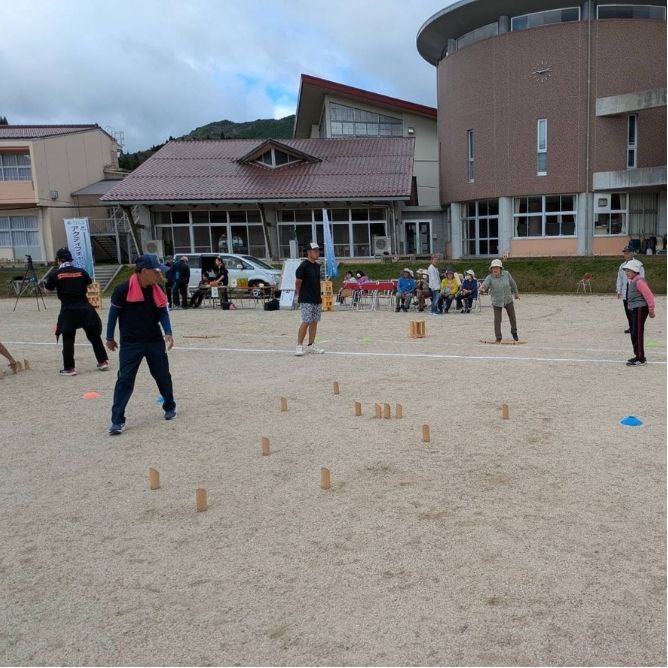 村民の交流と健康促進を兼ねたモルック大会を、岡山大学の学生たちの運営協力によって実現。